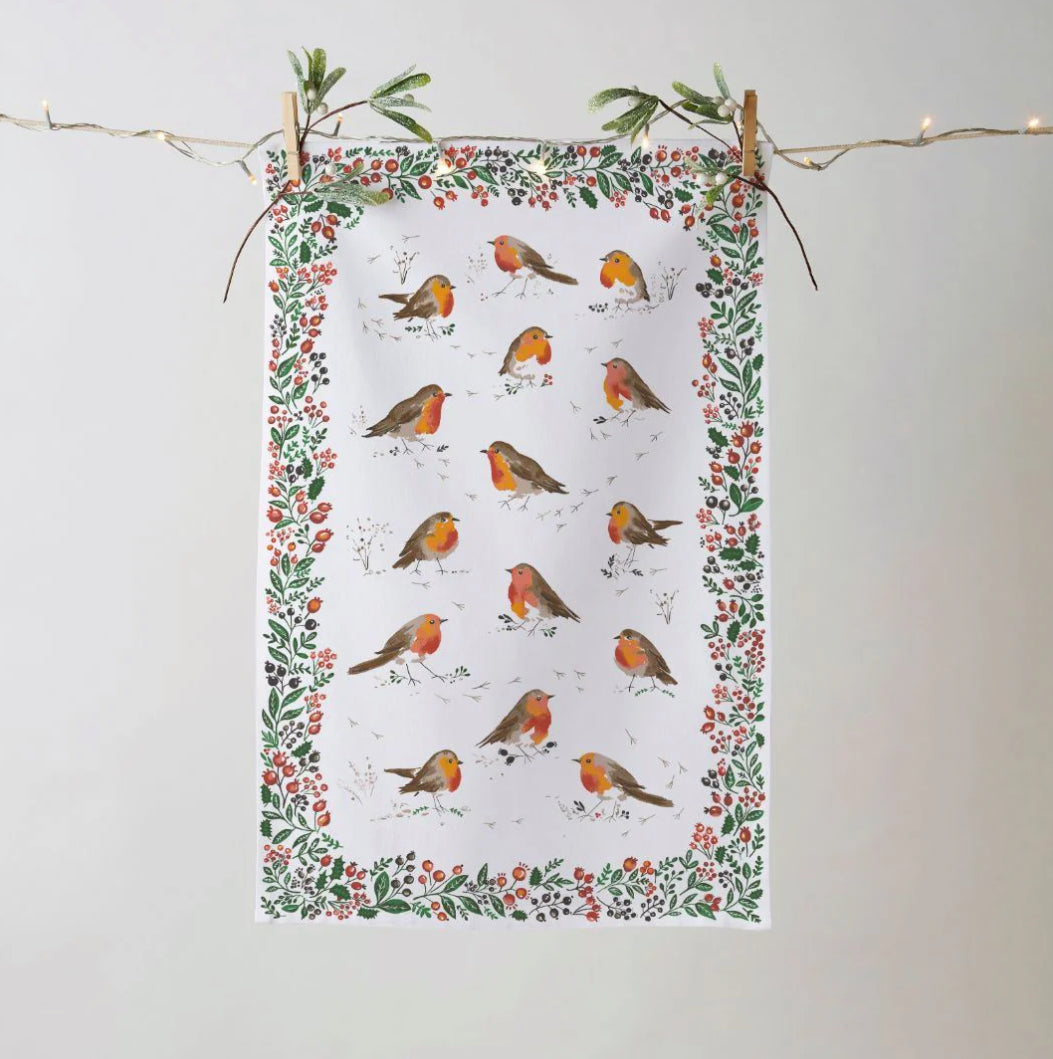 Ulster Weavers julhanddukar, tillverkade av deras talangfulla team av screentryckare, färgsättare och designers, innehåller 100 % återvunna fibrer och är tillverkade i Lisburn, Nordirland, och visar upp det bästa av Ulster Weavers.