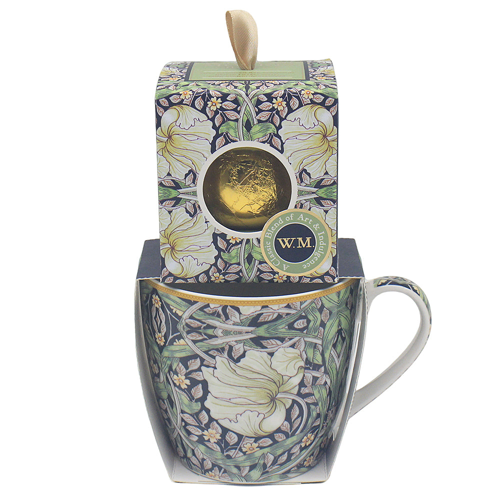 Tillverkad i fint porslin med William Morris populära mönster Pimpernel. Levereras i ett fint presentset med en chokladbomb fylld med mini-marshmallows.