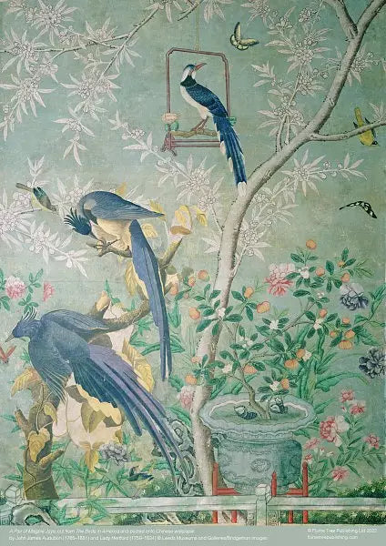 🕊️ Motiv: “A Pair of Magpie Jays” + asiatiska trädgårdsfåglar – fåglar i mönster och färgprakt.