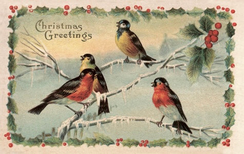 Vackert paketkort med vinterfåglar. Storlek: 6x9,5cm